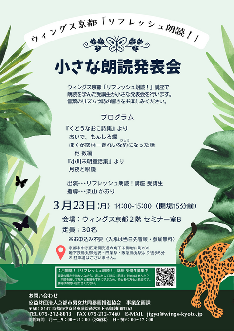 ウィングス京都「リフレッシュ朗読!」講座で朗読を学んだ受講生が小さな発表会を行います。